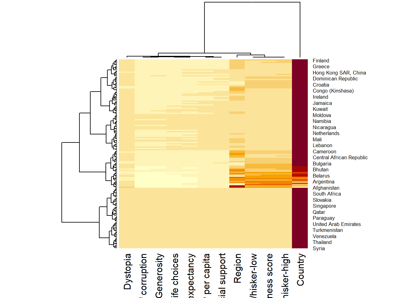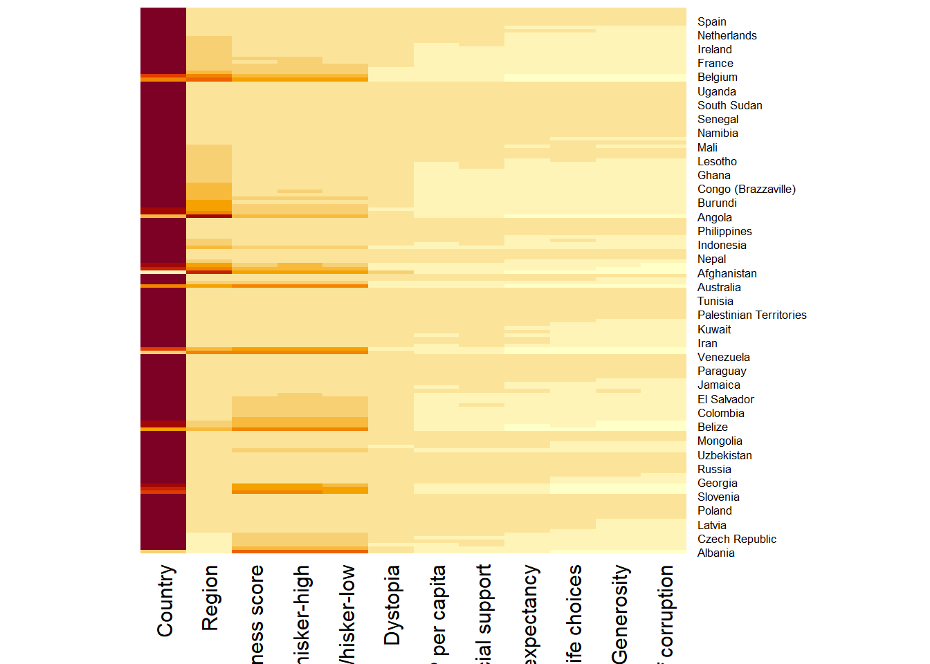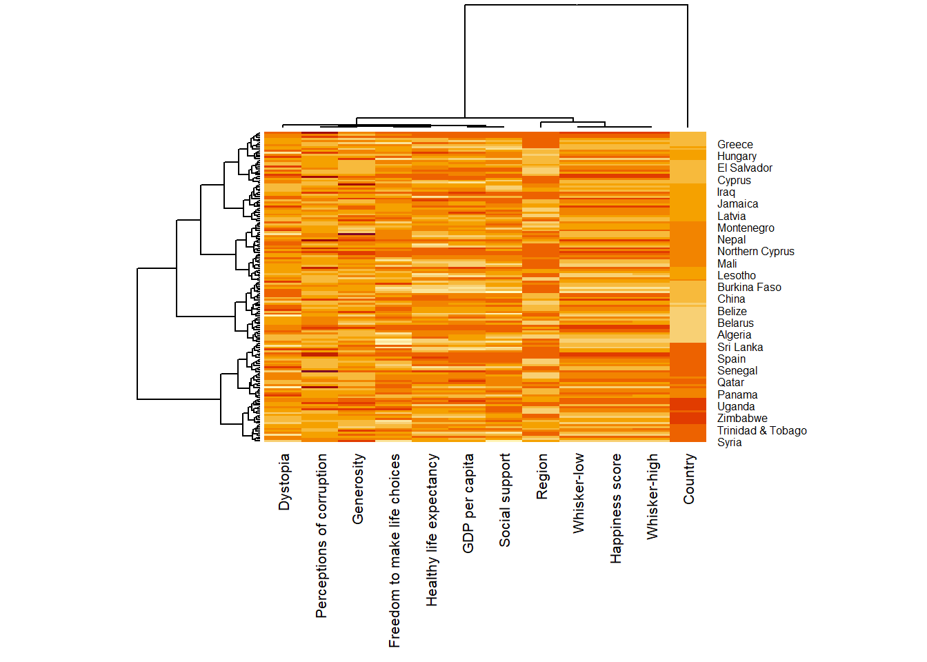 row.names(wh) <- wh$CountryNotice that the row number has been replaced into the country name.