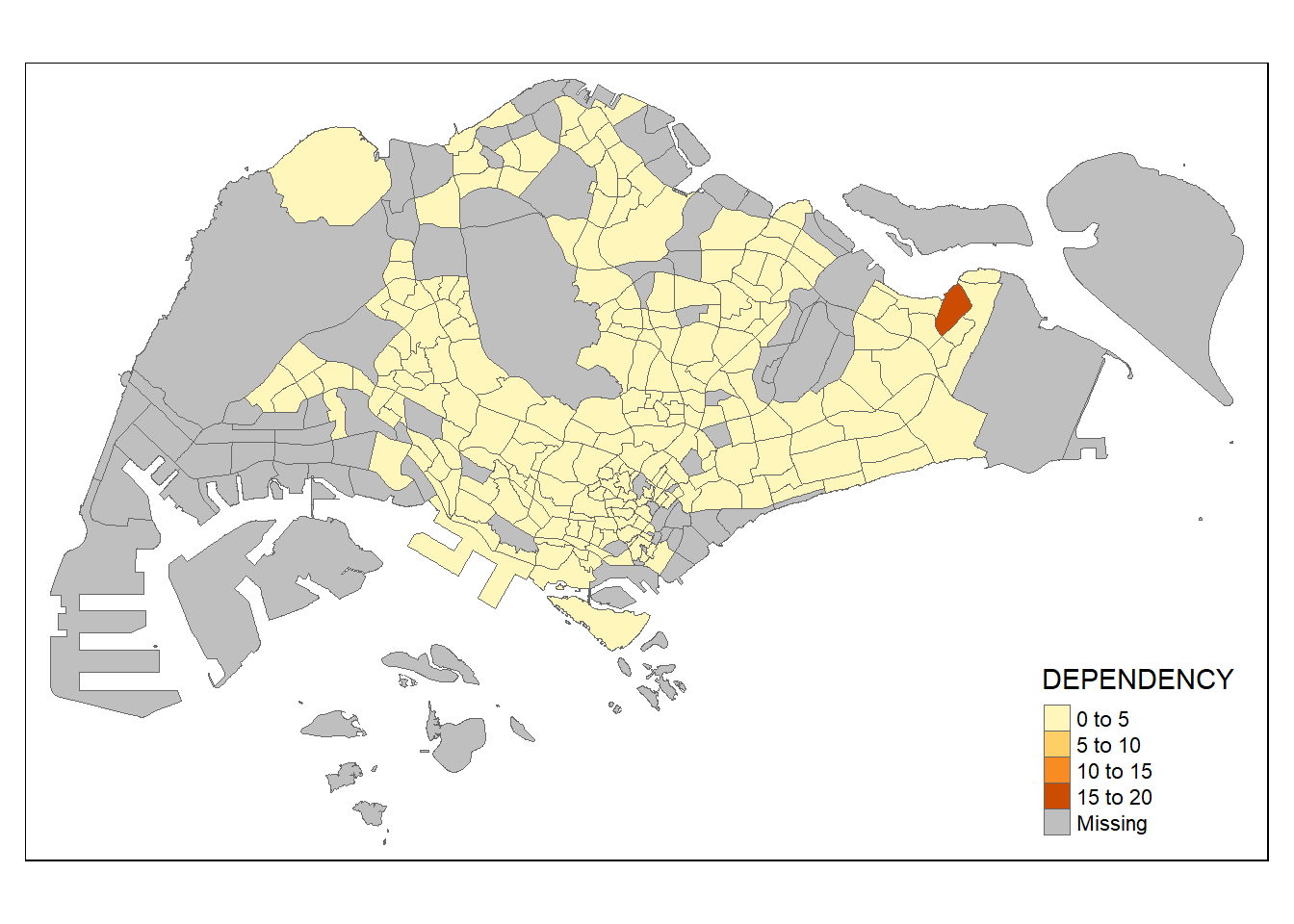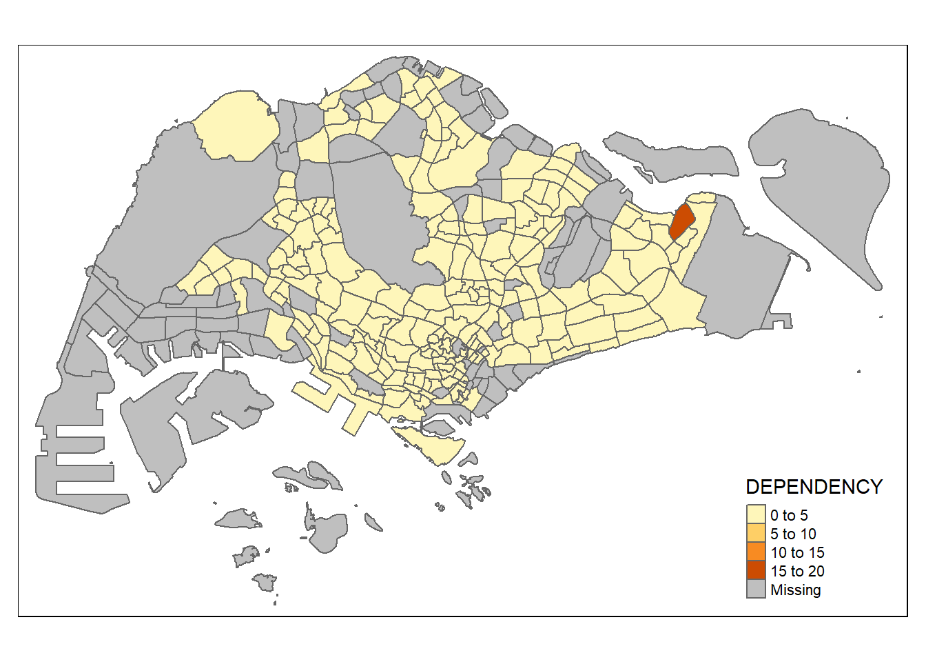Before a thematic map can be prepared, you are required to prepare a data table with year 2020 values. The data table should include the variables PA, SZ, YOUNG, ECONOMY ACTIVE, AGED, TOTAL, DEPENDENCY.