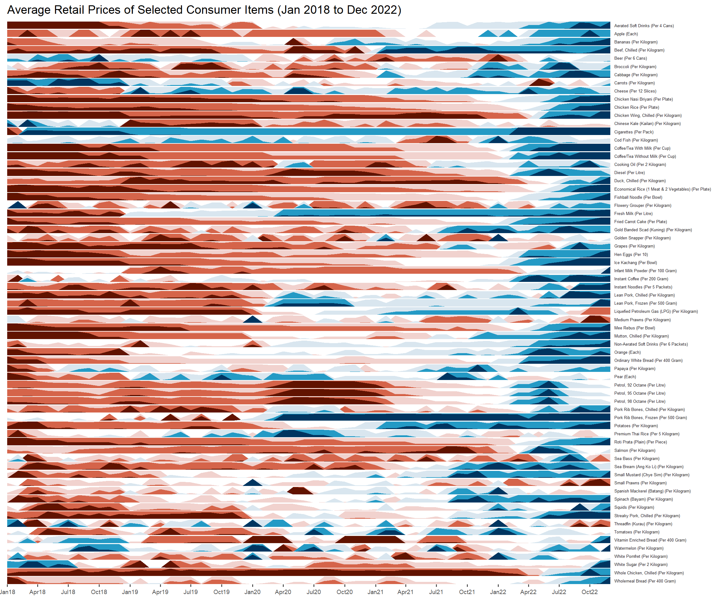 ggtitle('Average Retail Prices of Selected Consumer Items (Jan 2018 to Dec 2022)')